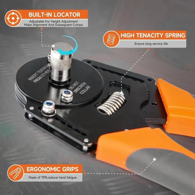 Adjustable Crimping ForceThe crimper has an adjustable crimping force, which improves its adaptability to different contacts