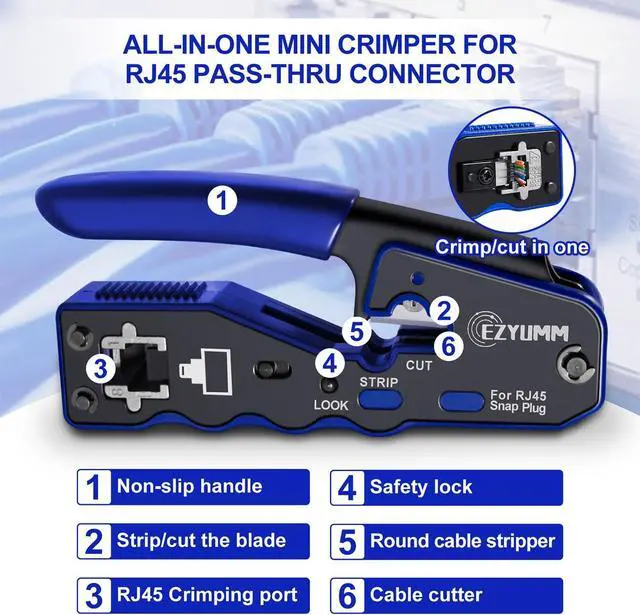 Compatible Connectors: Your RJ45 Crimp Tool is compatible with EZYUMM RJ45 Connectors Pass Through, providing reliable and secure connections.
