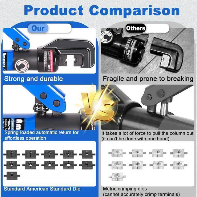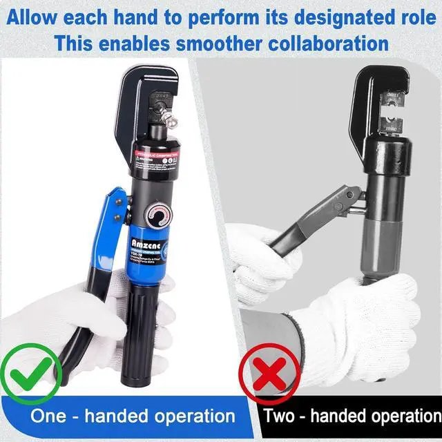 Innovative Design AMZCNC' s hydraulic crimping tool is equipped with a handle rebound spring and can be operated with one hand. Compared to products without return springs, it is easier to operate the handle with one hand, and one person can complete the crimping job independently.