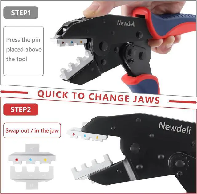 Quick Jaw Replacement Switching between different wire connectors is effortless with a simple press to release and replace jaws, no screwdriver needed.