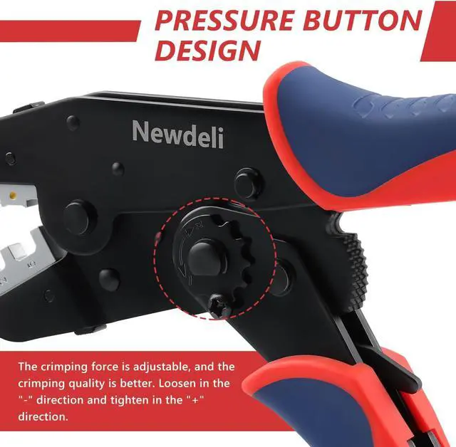 Adjustable Crimping Force Newdeli wire crimper features a star wheel for adjusting crimping height, ensuring optimal crimping force for different projects. A quick-release lever allows easy opening of the crimping jaws at any position.