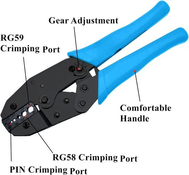 Precise Crimping: Premium quality coax crimper tool made of carbon steel, black oxide finish; the handle is comfortable, efficient ratchet design and high-precision jaw, precise crimping; Work for crimping BNC, TNC, SMA crimp connectors; suitable for coaxial cable: RG58, RG59, RG62, RG174