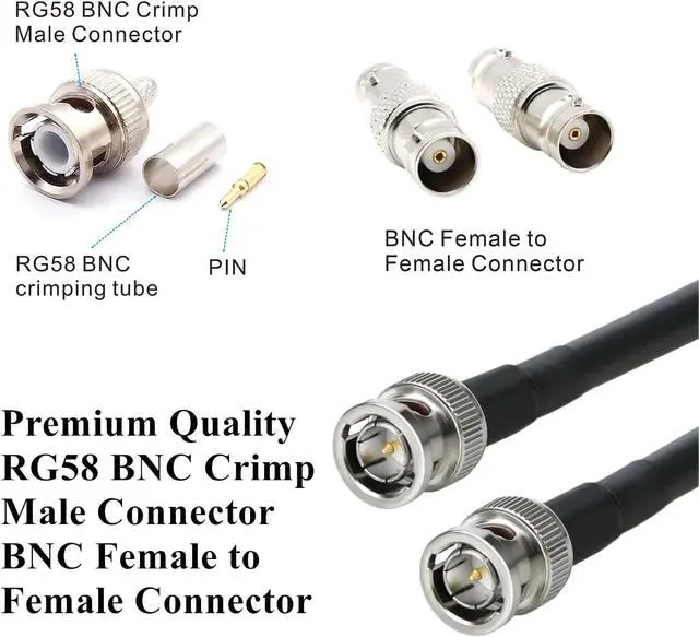 Premium Quality RG58 BNC Male Crimp Connectors; BNC Female to Female Connectors; RG58 BNC Crimping Tube;