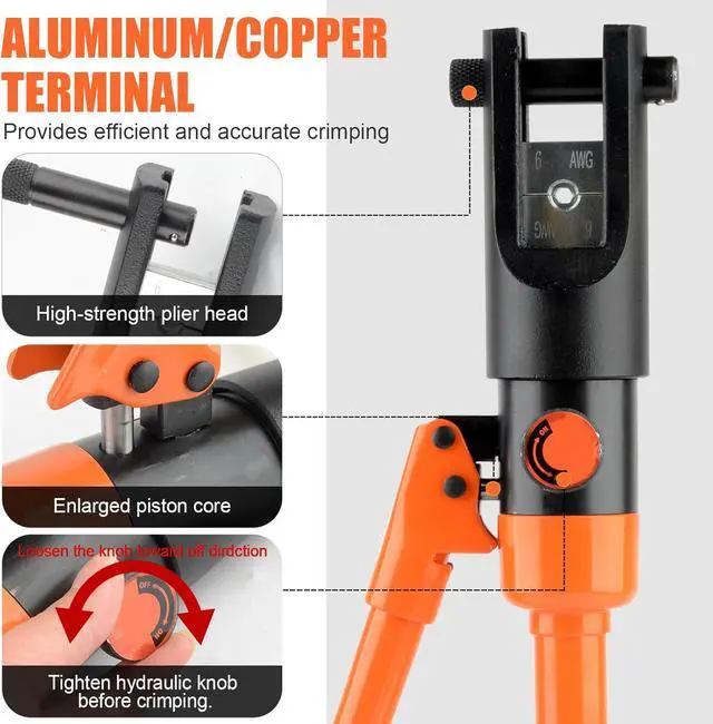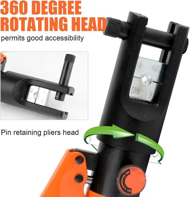 Versatile Application: Our Hydraulic Crimping Tool is perfect for attaching lugs to heavy-duty power cables and wires. It excels in crimping battery terminals, welding cables, power wires, electrical cables, and more. The 180° rotatable head facilitates working in narrow spaces