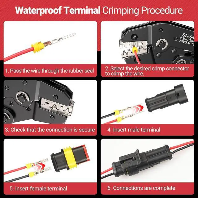PROFESSIONAL-GRADE PRECISION: Achieve flawless, tight crimps effortlessly with our precision-engineered crimper. Ideal for stamped terminals, this tool guarantees professional results for automotive, industrial, and hobbyist applications