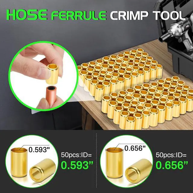 You will receive: One Heavy Duty Standard Hose Crimper, One instruction manual, One package of F7326 and One package of F7328 Iron Rings, 50 per Pack, F7326: