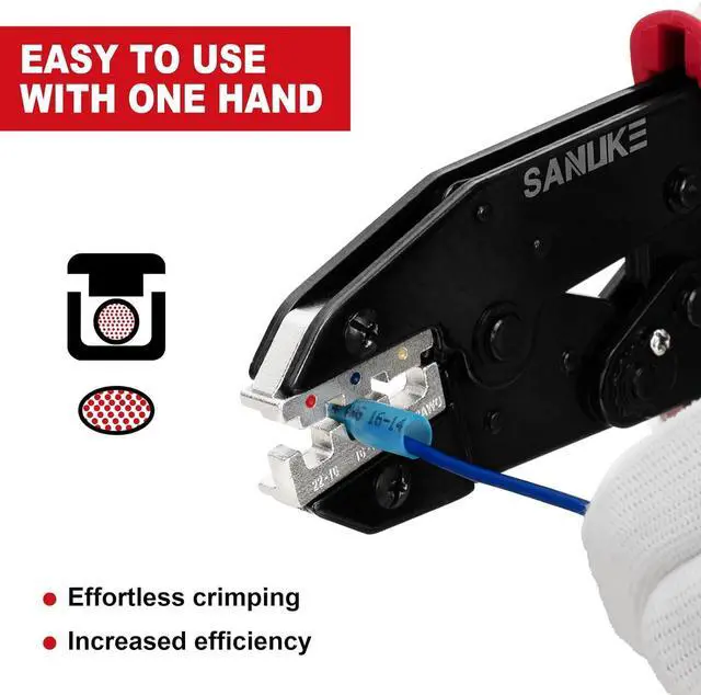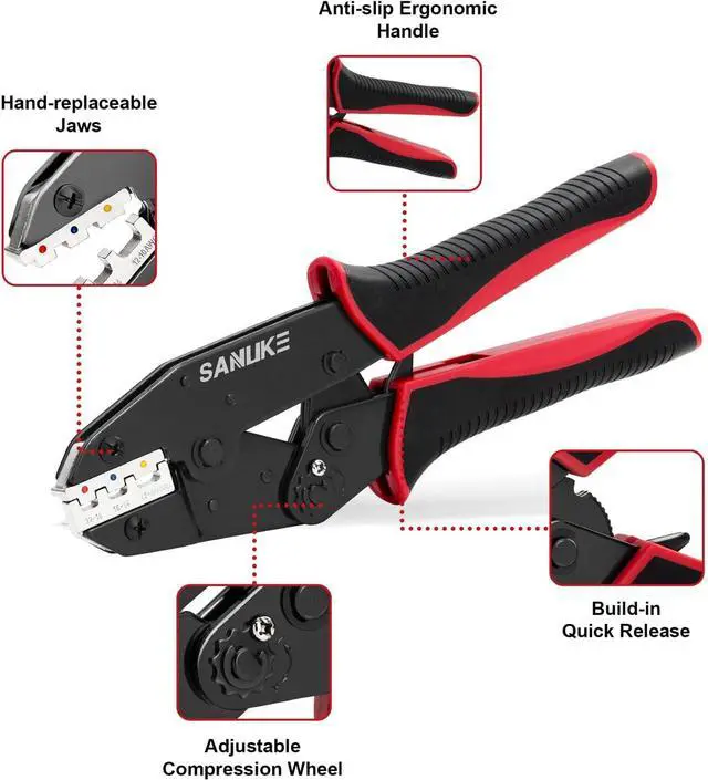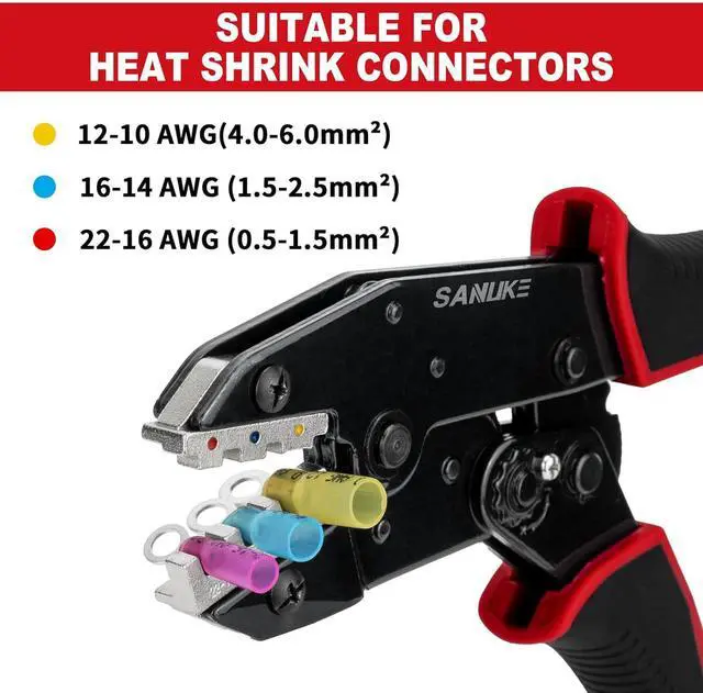 Professional Crimping Tool: The Sanuke crimping tool is ideal for heat shrink connectors (AWG 22-10). The wire crimper features an efficient ratcheting mechanism and professional-grade dies that deliver quick, rock-solid crimps every time. Crimper tool is designed not to damage heat shrink insulation, making it perfect for any application that requires wiring