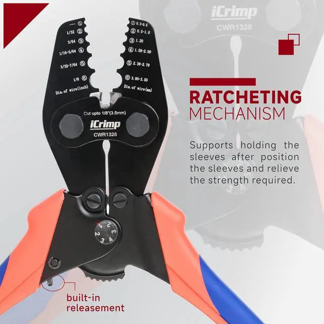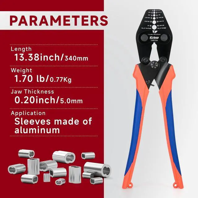 HUMANIZED With ratcheting mechanism, its more efficient to crimp the sleeves and convenient to hold the sleeves. Ergonomic sure-grip bring comfortable experience during operation.