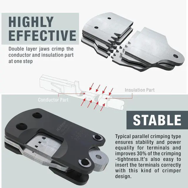 Typical parallel crimping type ensures stability and power equality and improves 30% of the crimping-tightness