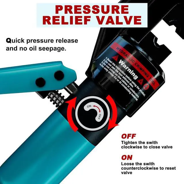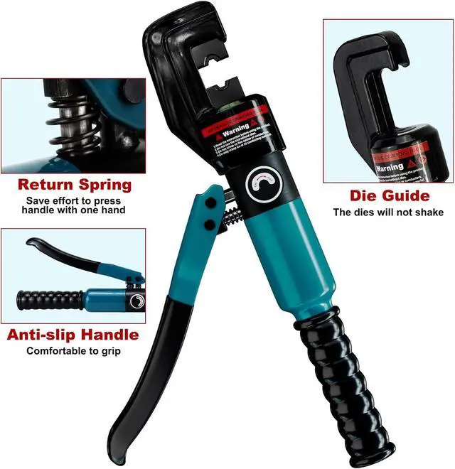 Easy OperationThe hydraulic wire crimper tool offers pressure ON-OFF control and handle return spring for one-hand operation. Innovative Tongs with guide rail make it quickly replace the mold.
