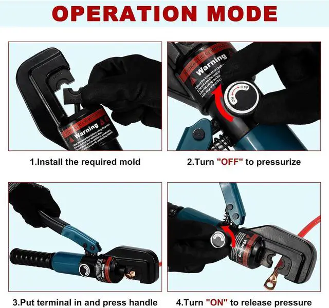 Wide ApplicationThe hydraulic crimper tool is greatly used for battery and welding cables, electrical cables, power wires, cable railing hardware, various deck railing kit.