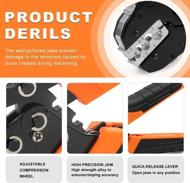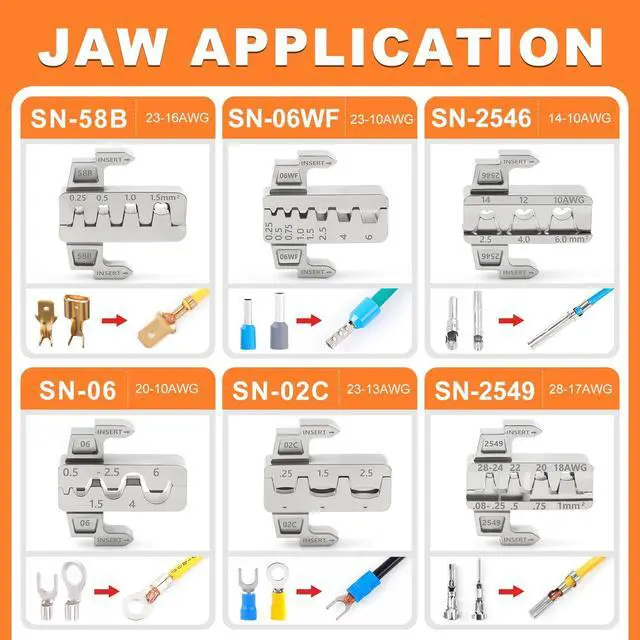 All-in-One Crimping SetWorks with heat shrink, insulated, non insulated, Dupont, ferrule, solar and open barrel terminals. The added Dupont die expands compatibility and makes it a versatile wire crimping kit.