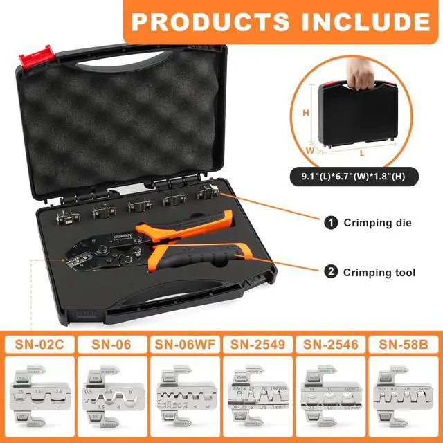 Comfortable and Organized DesignSoft grip handles improve comfort during long work sessions. Comes with a sturdy storage case to keep all dies neatly arranged, ideal for travel and professional service use.