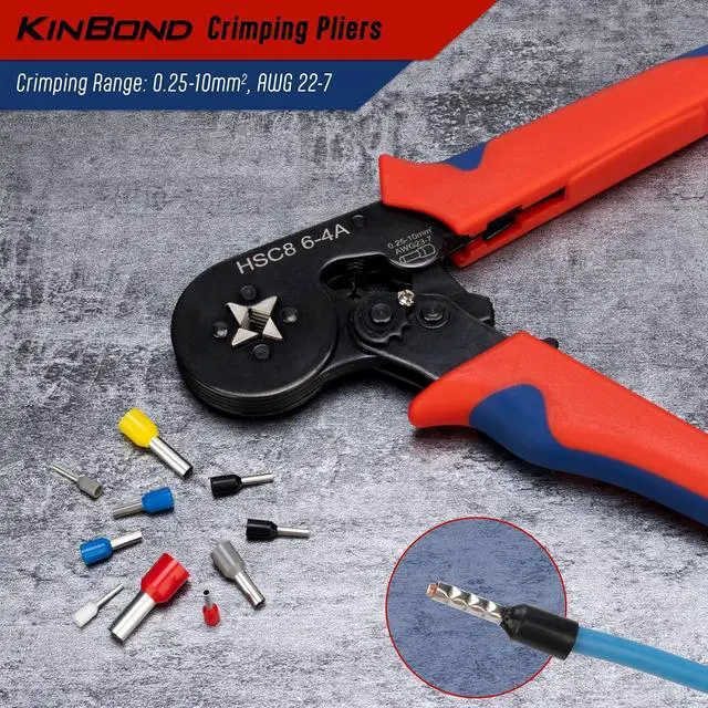 VERSATILE CRIMPING: Self-adjustable crimping tool compatible with AWG23-7 gauge wire ferrules, perfect for electrical terminals and connectors