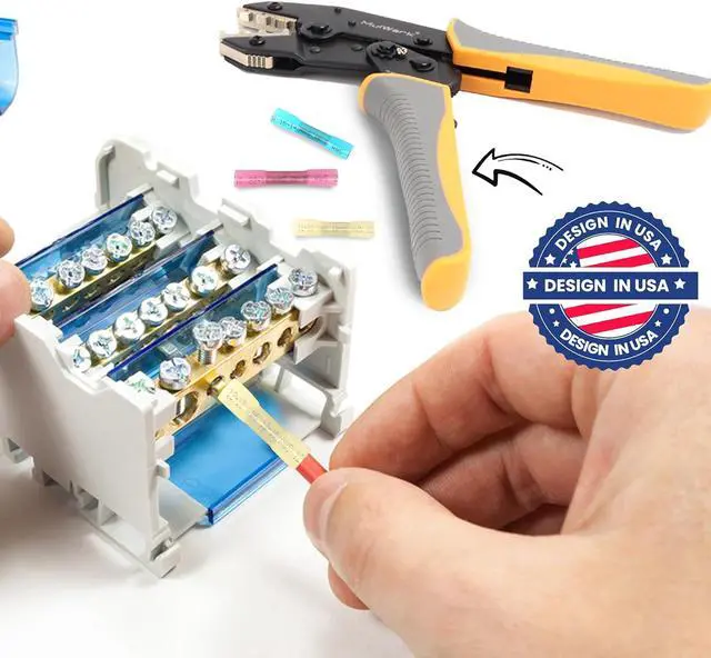 PROFESSIONAL WIRE CRIMPER FOR HEAT SHRINK CONNECTORS: Our industrial-grade wire crimping tool is specially designed for AWG 22-10 heat shrink crimper applications, featuring a precision ratcheting crimper mechanism with color-coded dies. This electrical crimper delivers waterproof, military-grade connections while protecting insulation integrity - ideal for automotive, marine and electrical projects.