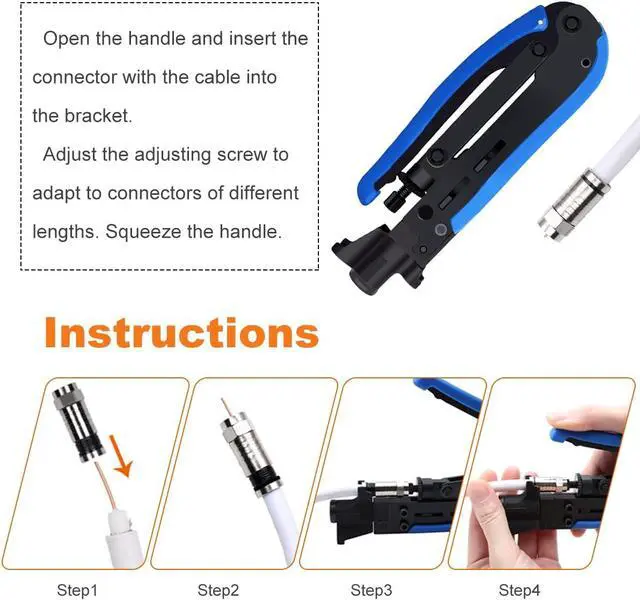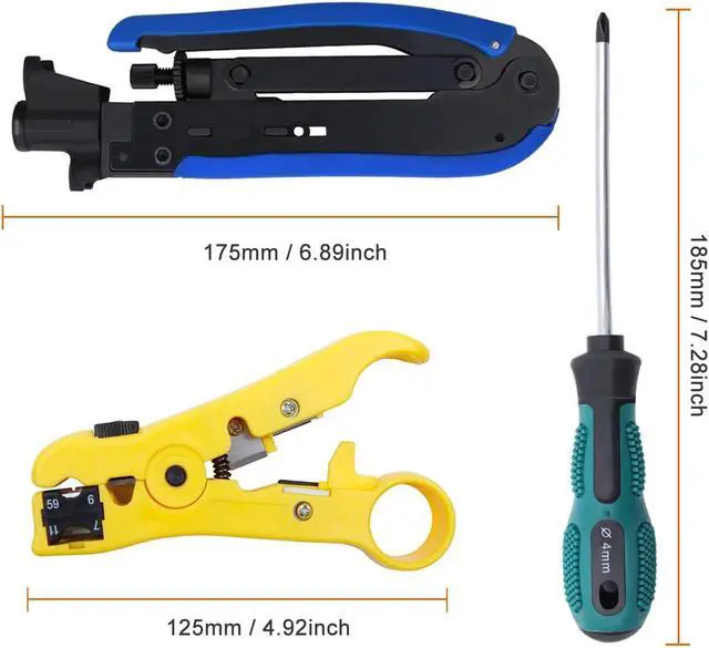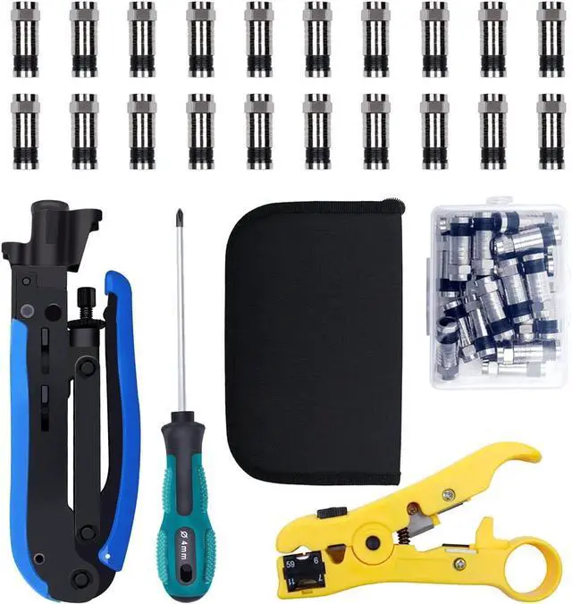Package Included 1 x Coaxial Cable Crimper, 1 x Coaxial Cable Stripper, 20 x F Compression Connectors, 1 x Cross Screwdriver, 1 x