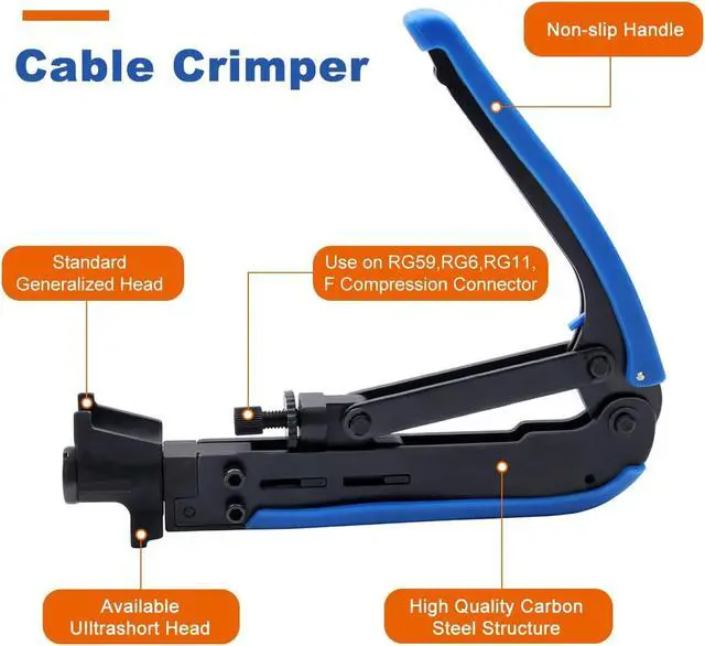 CapacityQuickly and easily alternates for compression of RG-6, RG-11, RG-7, RG-58, RG-59 connectors in one tool, and compress 75-5-7 kinds of Metric and Imperial F-Head. Ideal for positioning F series adapter-F plug compressor crimper tool set