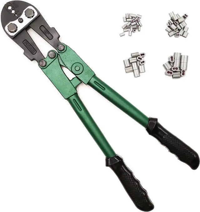 The Tool Kit allows a wide range of metal wires, wire ropes or cables to be swaged (crimped, spliced) with loop, oval, stop sleeves, ferrules, especially excellent performance for high tensile steel fence wires with our gritted crimp sleeves.
