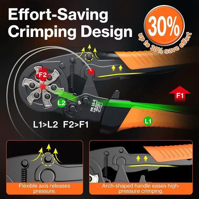 PERFECT AND SECURE CRIMPING: The crimper' s efficient self-adjusting ratchet mechanism and professional-grade crimping die can significantly improve the crimping effect.