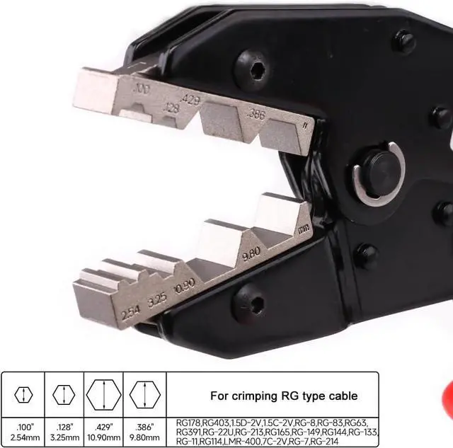 Professional Crimper: This crimper features an efficient ratchet mechanism and finish-machined crimp die for a solid crimp. For RG7, 8, 11, 22U, 63, 83, 114, 133, 144, 149, 165, 178, 213, 214, 391, 403, LMR400, BNC 1.5D -2V, 1.5C -2V, 7C-2V Connectors.