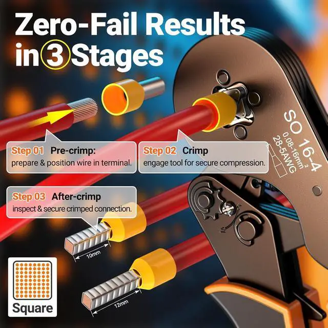 PERFECT AND SECURE CRIMPING: The crimper' s efficient self-adjusting ratchet mechanism and professional-grade crimping die can significantly improve the crimping effect.