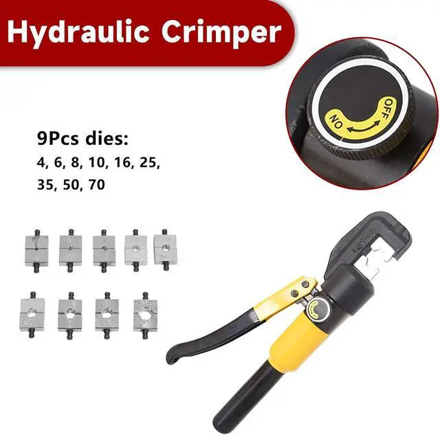 Compatibility: 6 Ton hydraulic wire crimper features 9 sets of dies for providing large crimping range from 4 to 70 square millimeters, ideal for meeting your different crimping needs
