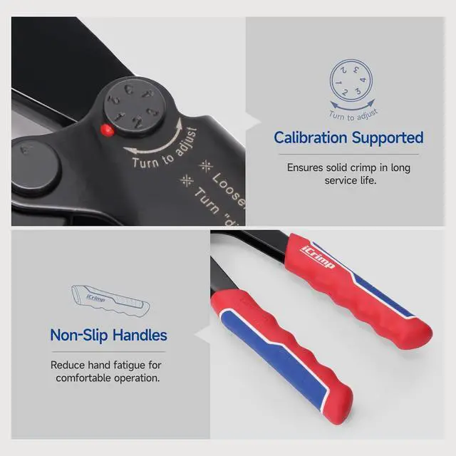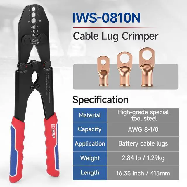 Labor-saving structure design makes crimping easy, even crimp the big size lugs.
