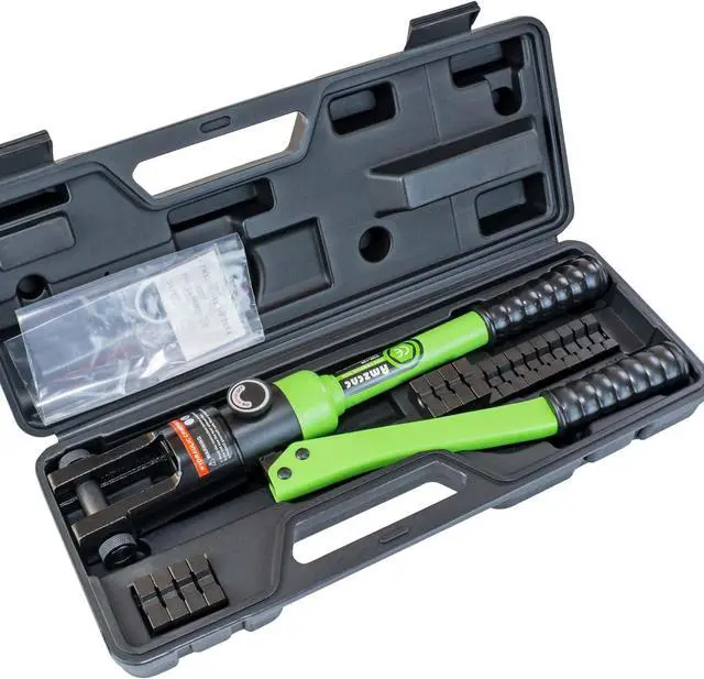 Versatile Crimping Capability: Our hydraulic crimping tool offers a powerful 12-ton output pressure and comes with a set of 9 standard American Wire Gauge (AWG) crimping dies, ranging from 8AWG to 4/0AWG. This tool can crimp copper and aluminum wires with ease, making it perfect for a variety of applications.