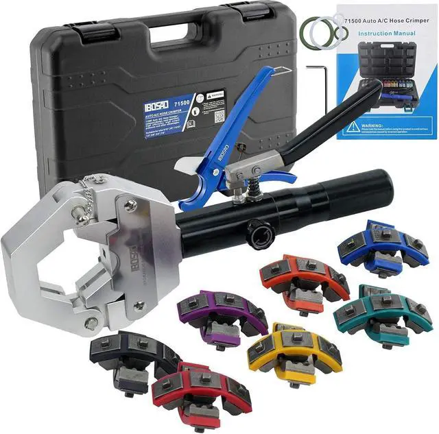 The dies snaThe Kit comes with a complete set of dies covering hose sizes: 6 SRB, 8-9 SRB, 10 SRB, 12 SRB, #8, #10, #12. Always wear safety goggles when operatingp quickly into the press fixture requiring no pins or screws.