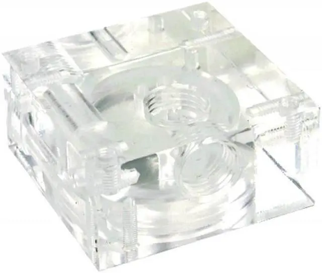 This top is designed in such a way to allow mounting on the Alphacool DC-LT pump. With the top it is possible to integrate this miniature pump into your water cooling loop via ¼â threads. The inlet fitting can be connected on the side or on top of the unit. The outlet is then connected to the opposite side.