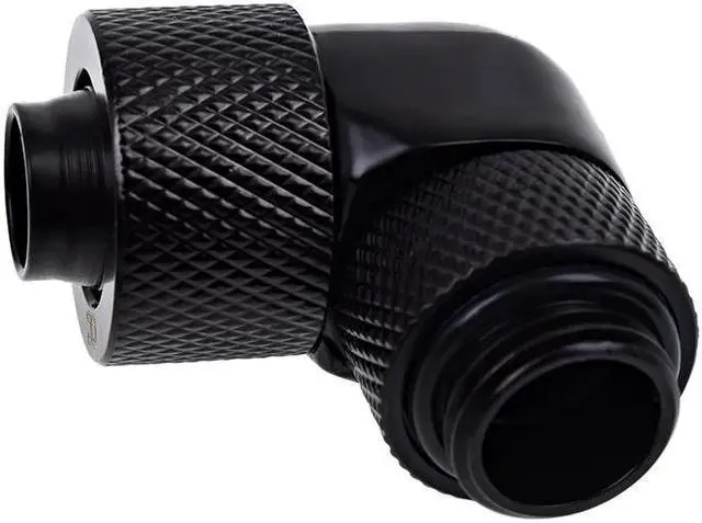 This connector has a ¼” thread on one side and is thereby compatible with 95% of components. The other side fits a 13/10mm/16/10mm/19/13mm hose. The middle of this connector is turned at a 90° angle in order to prevent complicated hose connections. The threaded side is rotatable for maximum flexibility.