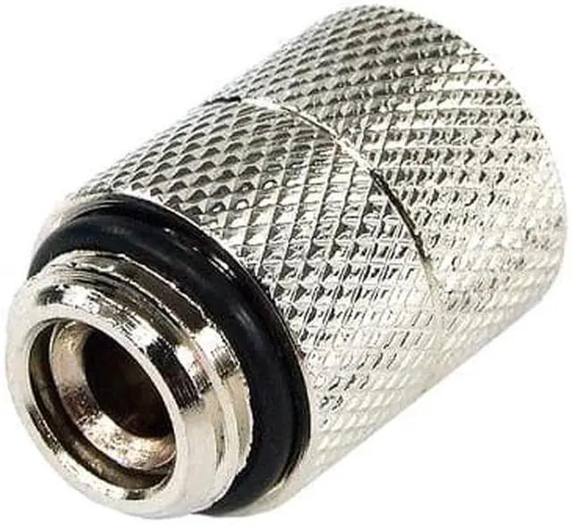 This G1/4" extension (male to female) allows an extension of a G1/4" thread which e. g. allows more universal application of angled fittings. When using this extension and angled fittings the tubing can be installed parallel as the threads are at different levels.