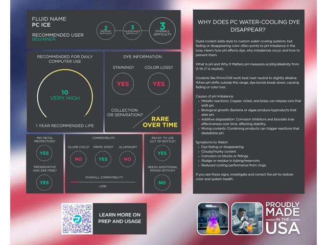 PrimoChill Ice - Computer WaterCooling Coolant, Low-Conductive, Transparent, Full Protection, Proudly Made in the USA (32oz/.9L)