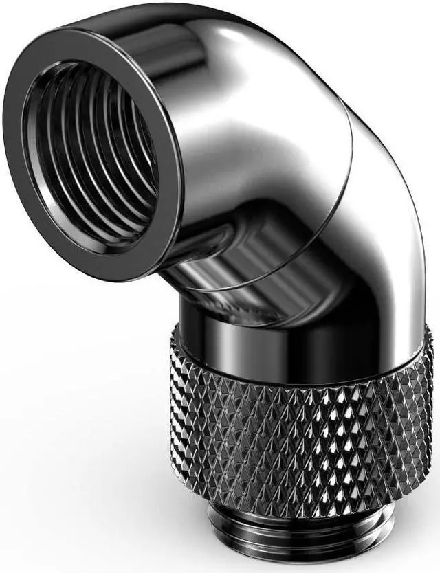 The PrimoChill Male to Female G 1/4in. 90 Degree SX Dual Rotary Elbow Fitting is an easy solution when trying to change direction quickly with your loop. This adapter is great for redirecting tubing runs away from components at unconventional angles. The dual rotary function allows you to aim the connection in a ton of different directions.