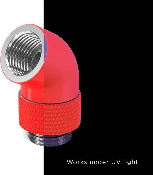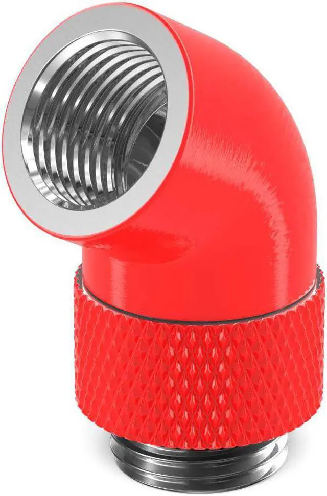 The PrimoChill Male to Female G 1/4in. 60 Degree SX Rotary Elbow Fitting is an easy solution when trying to change direction quickly with your loop. This adapter is great for redirecting tubing runs away from components at unconventional angles. The rotary function allows you to aim the connection in any desired direction 60 degrees from the mount.