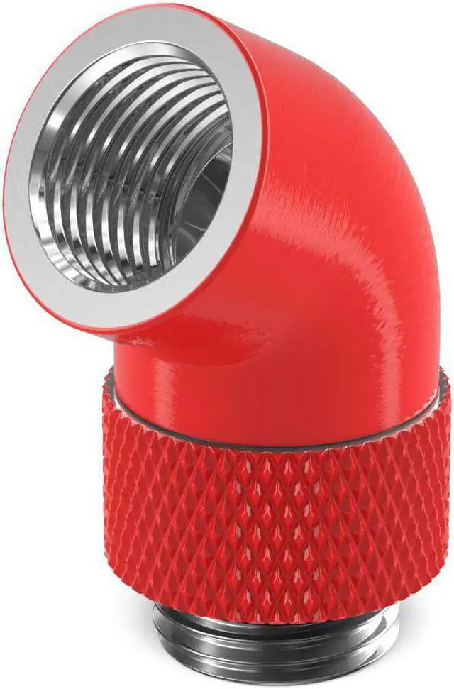 The PrimoChill Male to Female G 1/4in. 60 Degree SX Rotary Elbow Fitting is an easy solution when trying to change direction quickly with your loop. This adapter is great for redirecting tubing runs away from components at unconventional angles. The rotary function allows you to aim the connection in any desired direction 60 degrees from the mount.