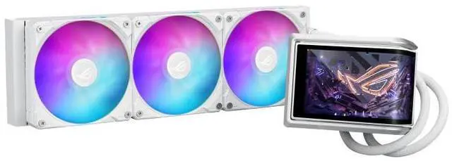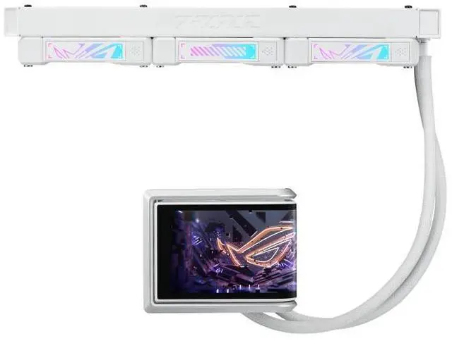 ASUS ROG RYUO IV 360 ARGB White Edition All-in-one AIO Liquid CPU Cooler, 400mm long water cooling tube, 3D visual effects, curved 6.67'' AMOLED screen, Asetek Gen8 V2,AMD AM4/AM5 & Intel LGA1851/1700