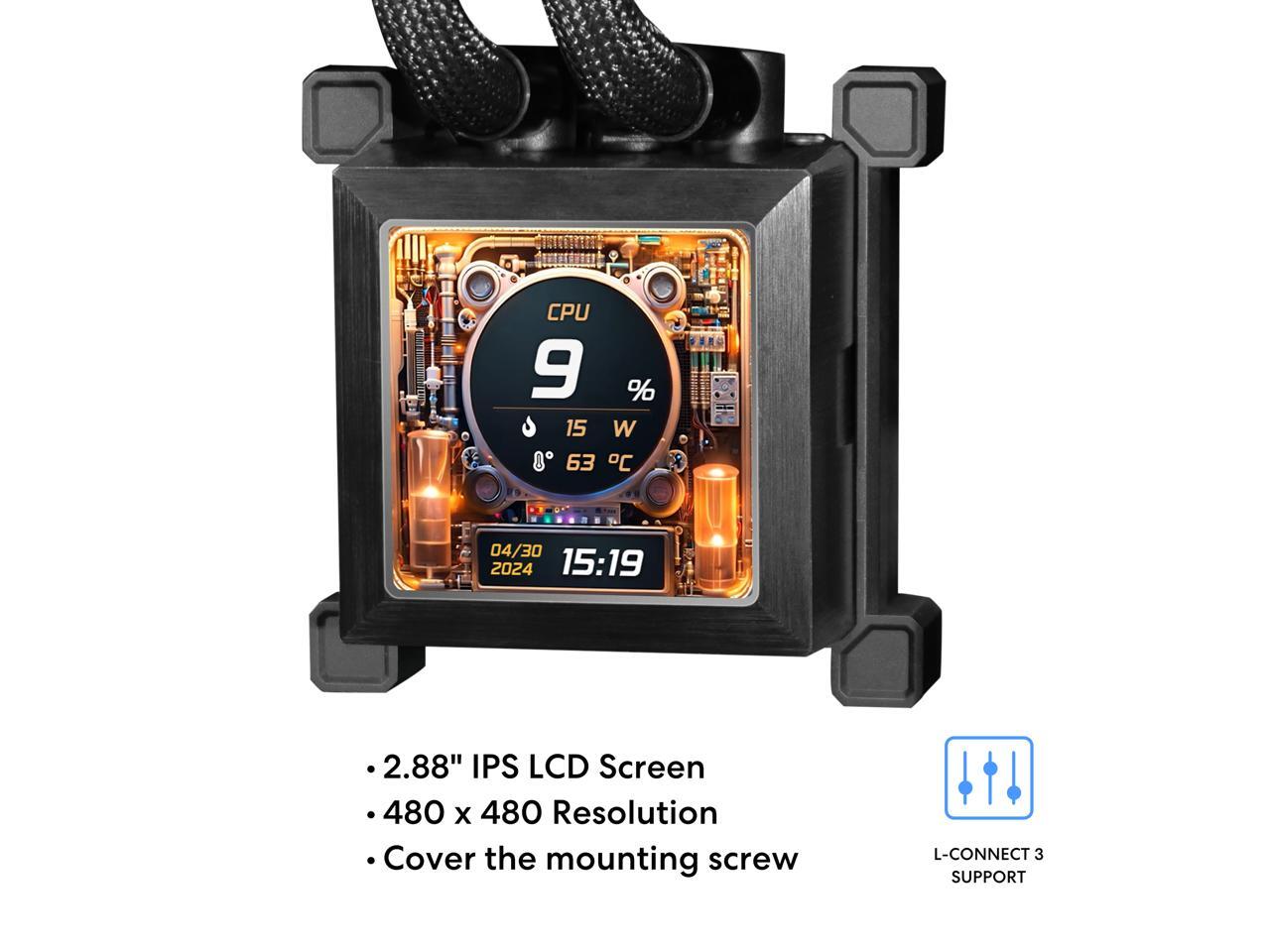 Lian Li Hydroshift 360 AIO- Pre-installed 3 x 28MM fans - Side-mounted coolant pathway - 2.88” LCD Screen - 480 × 480 Resolution - Captured screenshots or recorded videos Shift AIO -Black (HSLCD36SB)