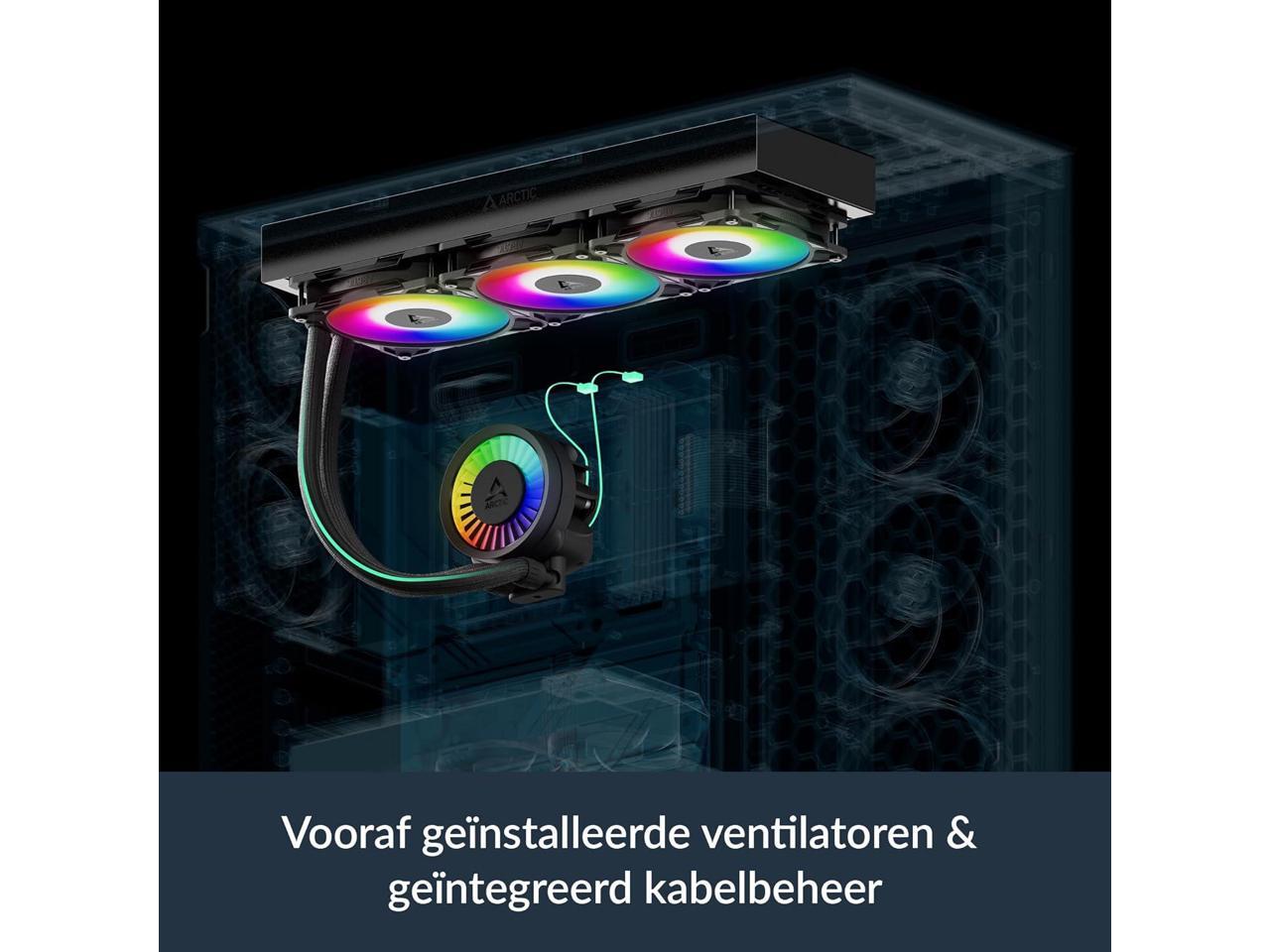 - INTEGRATED CABLE MANAGEMENT: The PWM cables of the radiator fans are integrated into the sleeve of the tubes, so only a single visible cable connects to the motherboard