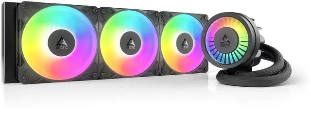 The ARCTIC Liquid Freezer III Pro 360 A-RGB AIO CPU Cooler offers exceptional cooling performance with its 360mm radiator and 38mm thickness, providing efficient heat dissipation for even the most demanding CPUs. Designed to handle high workloads and heavy gaming sessions, this cooler ensures your system remains cool and stable under pressure. Whether you're building a new PC or upgrading your current setup, this cooler delivers optimal thermal management for high-performance builds.