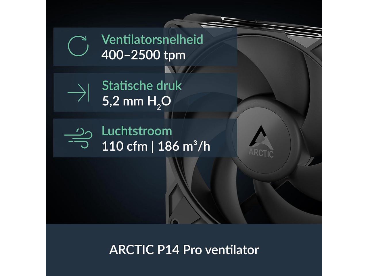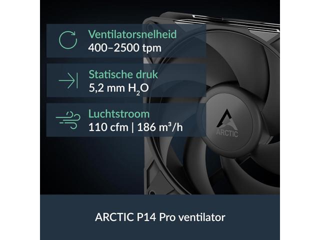 - ARCTIC's P14 PRO FAN: More power at any speed - more powerful and quieter than the P14, especially at low speeds. Higher maximum speed for optimal cooling performance under high load