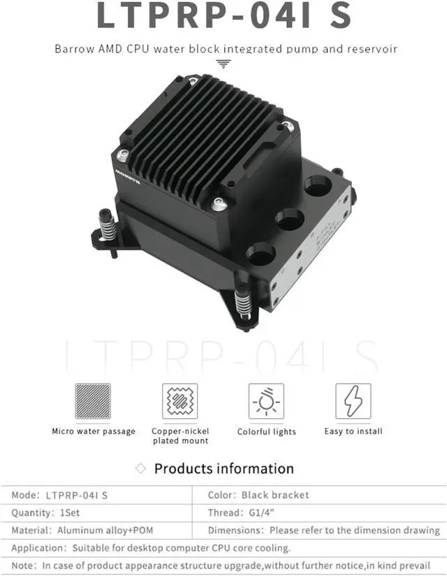 Barrow CPU Block-Pump Mini Combo, For Intel CPU, Compatible WithLGA115x/1200/1700 & X99/X299 platform, 17W PWM Pump POM Body Block-Pump AIO, Three In One With Metal Black Cooling Cover LTPRP-04I