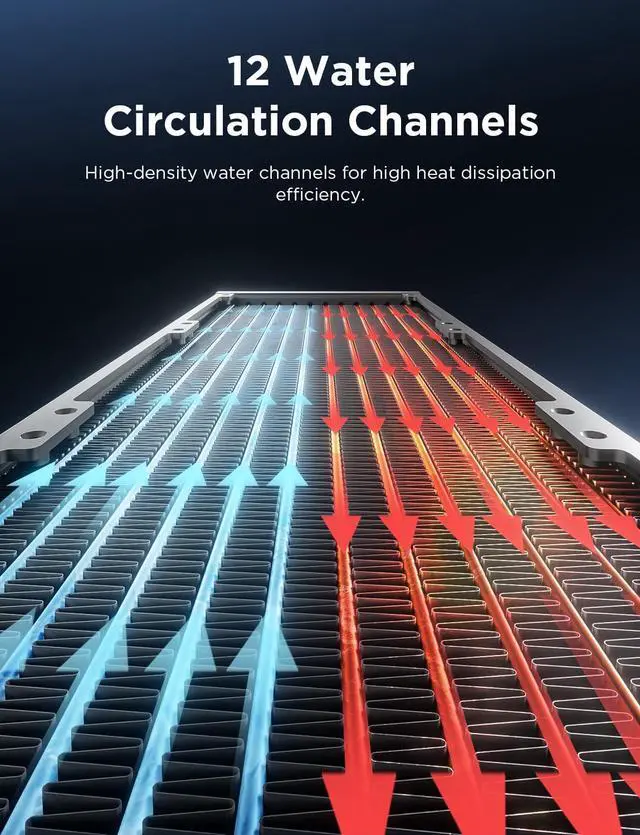 Powerful Cooling Solution: This aio cpu cooler features a 360mm high-density aluminum fin design that maximizes airflow and enhances heat exchange efficiency, keeping the CPU cool even under heavy loads. Furthermore, premium and durable tubing ensures unhindered coolant flow, preventing performance degradation and leakage risks due to aging
