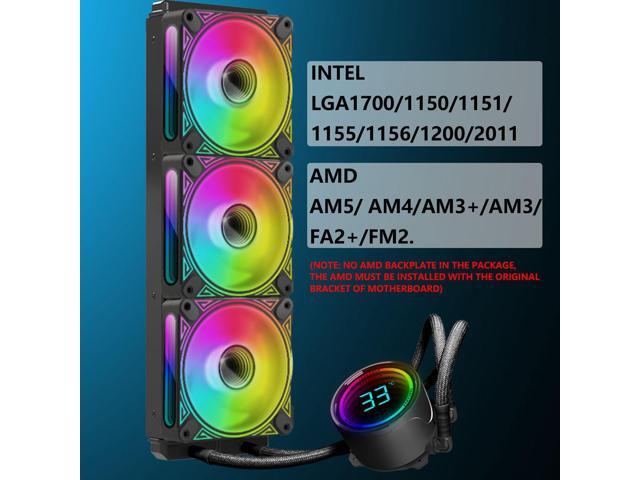 360mm CPU Liquid Cooler,Water Cooler with Temperature Display Screen,360mm Radiator ARGB & PWM Case Fans,LGA115X/1200/1700/1366/2011 / 2066, AM5 / AM4 ,Black 3 Fan Slots (120 mm)