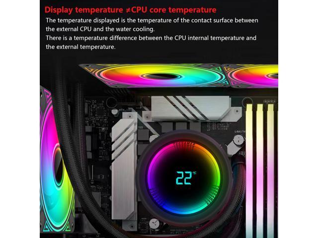 - CPU external temperature display: The temperature displays the temperature outside the CPU, not the internal temperature of the CPU. So there is no need to download the driver, and after installation, it directly displays the temperature of the water-cooled copper plate in contact with the CPU.