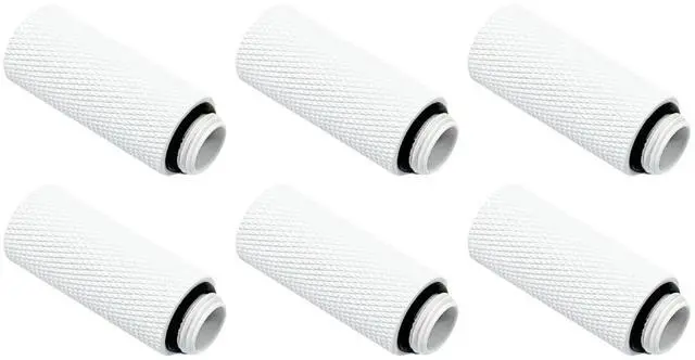 The dracaena.io 6 Pack G1/4" Male to Female Extender Fittings is designed to deliver flexibility and reliability for PC liquid cooling systems. With a 40mm height and 18mm outer diameter, these fittings ensure seamless compatibility with standard water cooling setups, making them ideal for extending loop connections and accommodating larger component spacing. Built from chrome-plated brass, they provide excellent heat dissipation, corrosion resistance, and long-term durability. The polished finish adds a premium look for showcase builds, while the concealed O-ring groove guarantees a secure, leak-proof seal. Installation is fast and effortless thanks to the tool-free design. Available in Black, Silver, and White, these fittings integrate perfectly with a variety of PC build aesthetics.