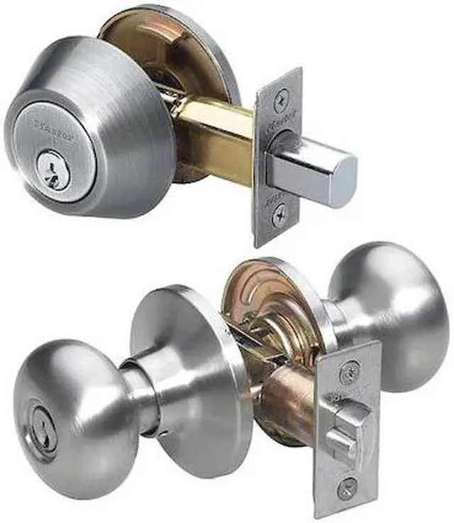 Mechanical, Knob, Cylindrical, Lockset Function Entrance, Lockset Grade 3, Biscuit Style, Satin Nickel Lockset Finish, Keyway Type Kwikset KW1, Key Type Alike, Standards ANSI, ADA Compliant No, Lockset Fire Rating Not Rated, Backset 2-3/8 in or 2-3/4 in, Ligature Resistant No, For Use With Interior Doors, Includes (2) Keys #12T3658, Deadbolt, Item Knob Lockset, Key Material Nickel Plated Brass, Knob Material Steel, Location Type Commercial, Lockset Performance Strength Medium Duty