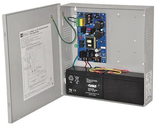 Power Supply 12Vdc Or 24Vdc @ 6A, Type Power Supply/Charger, Material Steel, Finish Gray, Enclosure Depth 3.25 In, Enclosure Width 13.00 In, Enclosure Height 13.50 In, Input Voltage 115VAC, Voltage OUTPut 12VDC or 24VDC, OUTPut Current 6A Amps, Input Frequency 60 Hz, Standards UL294, UL1481, MEA, CSFM, FM, Includes Battery leads, Cam Lock. This item has been restricted from sale in the following state (s): []