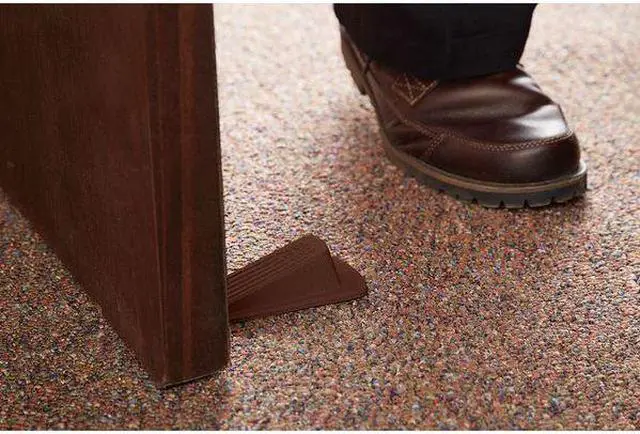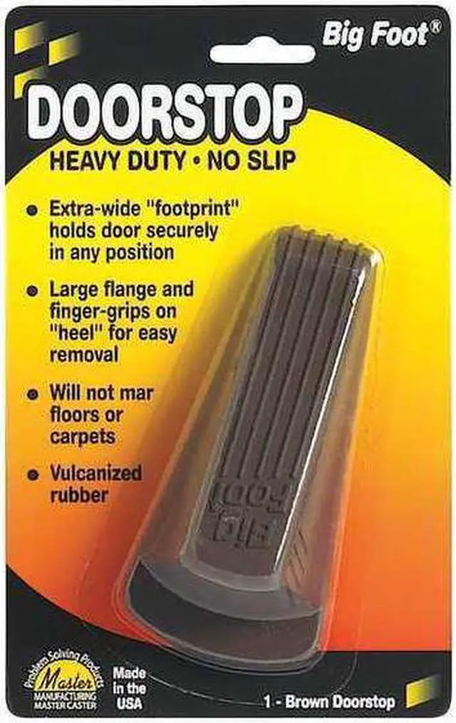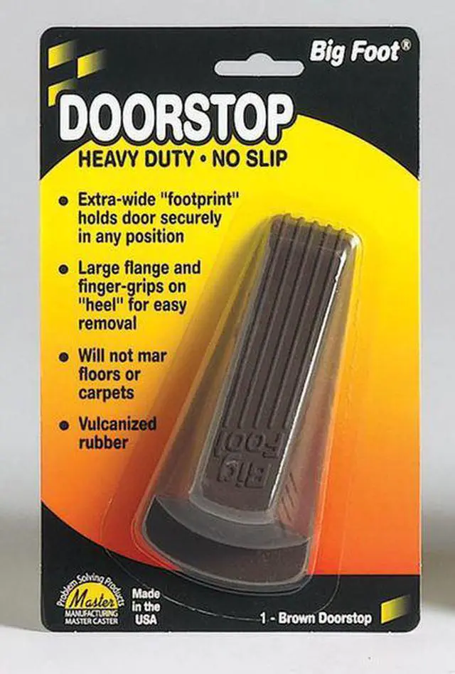 Door Wedge, Brown, Length 4 1/2 in, Width 2 in, Height 1 1/4 in, Material Rubber. This item has been restricted from sale in the following state (s): []