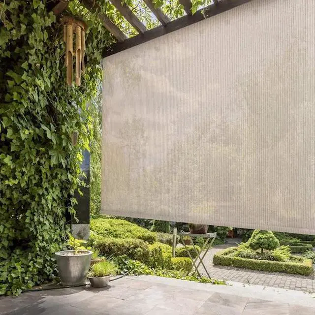 Exterior Sun Shade, Valance Width 96 in, Valance Depth 3 in, Valance Height 3 in, Valance Color Oil Rubbed Bronze, Fabric Color Cabo Sand, Fabric Height 72 in, Fabric Width 94 1/8 in, Operation Mechanism Pole and Crank, Operation Side Left, Right, Tie Down Type Bungee and Hook System, UV Protection 72 Percent, Assembly Assembled, Blackout No, Includes Valance No, Includes Assembly Tools Not Applicable, Mounting Location Wall, Ceiling, Material Polyethylene, Includes Installation Template